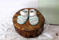 Босоніжки блакитно-кремові для ляльки ростом 32-34 см, ручна робота